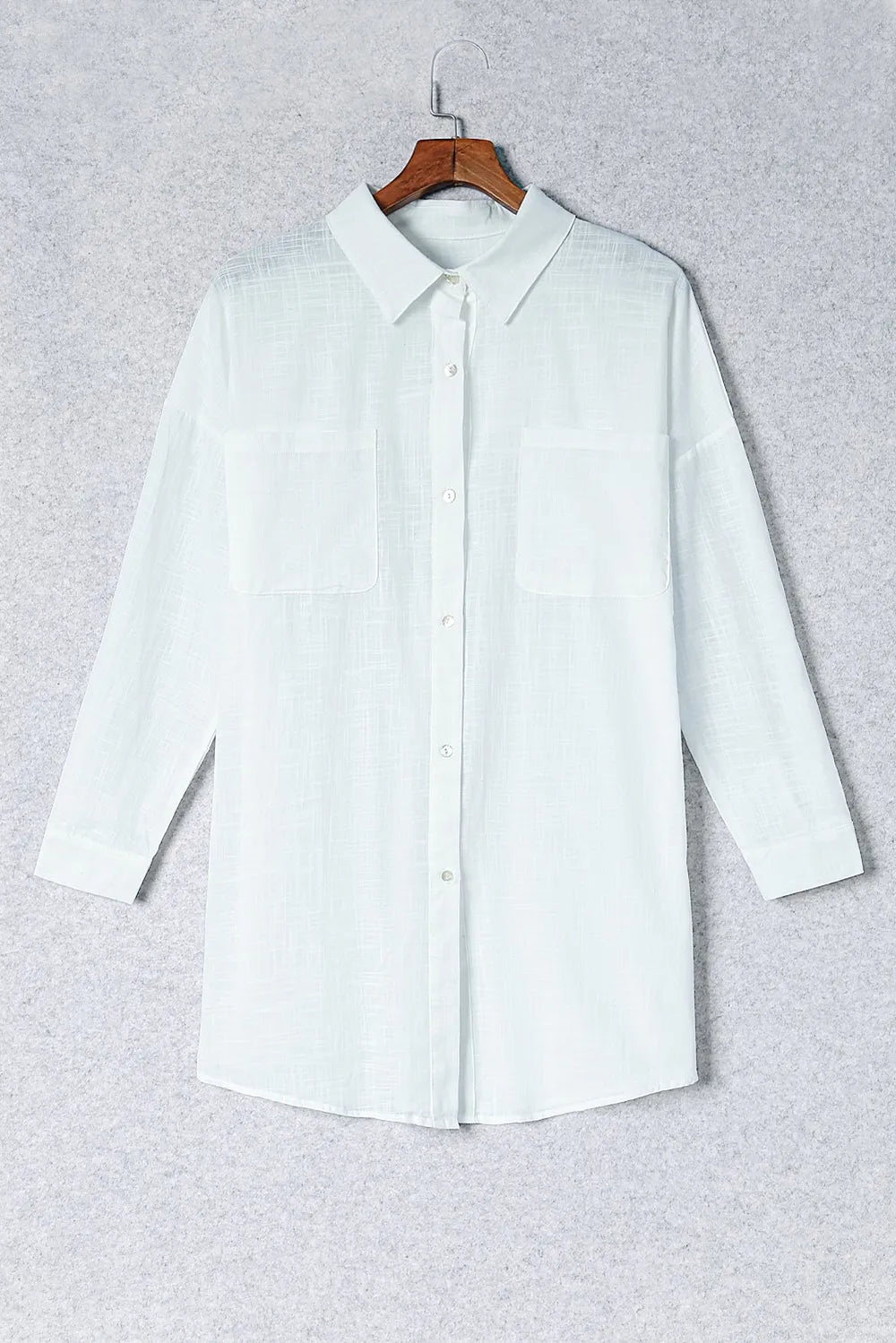 Button-Up Longline Shirt with Breast Pockets